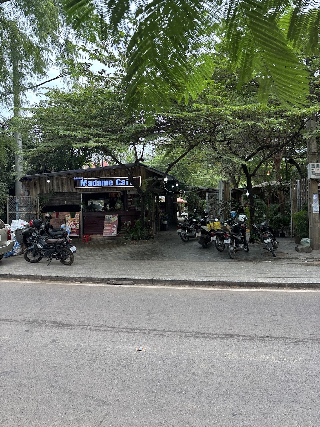 Madame Café offers a delightful retreat along the river in Siem Reap, where locals and visitors enjoy flavorful dishes and affordable coffee. This charming cafe serves surprising favorites like fried pork with pickled cabbage and robust chocolate frappes. The setting is inviting, with seating options under the roof or by the riverside, some featuring hammocks for ultimate relaxation. It’s a beloved spot praised for its tasty food, reasonable prices, and warm ambiance.